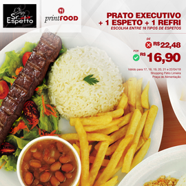 01 espeto à escolha (carne, frango, kafta