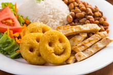 Acompanha arroz, feijão, batata smile e farofa