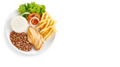 Acompanha arroz e fritas